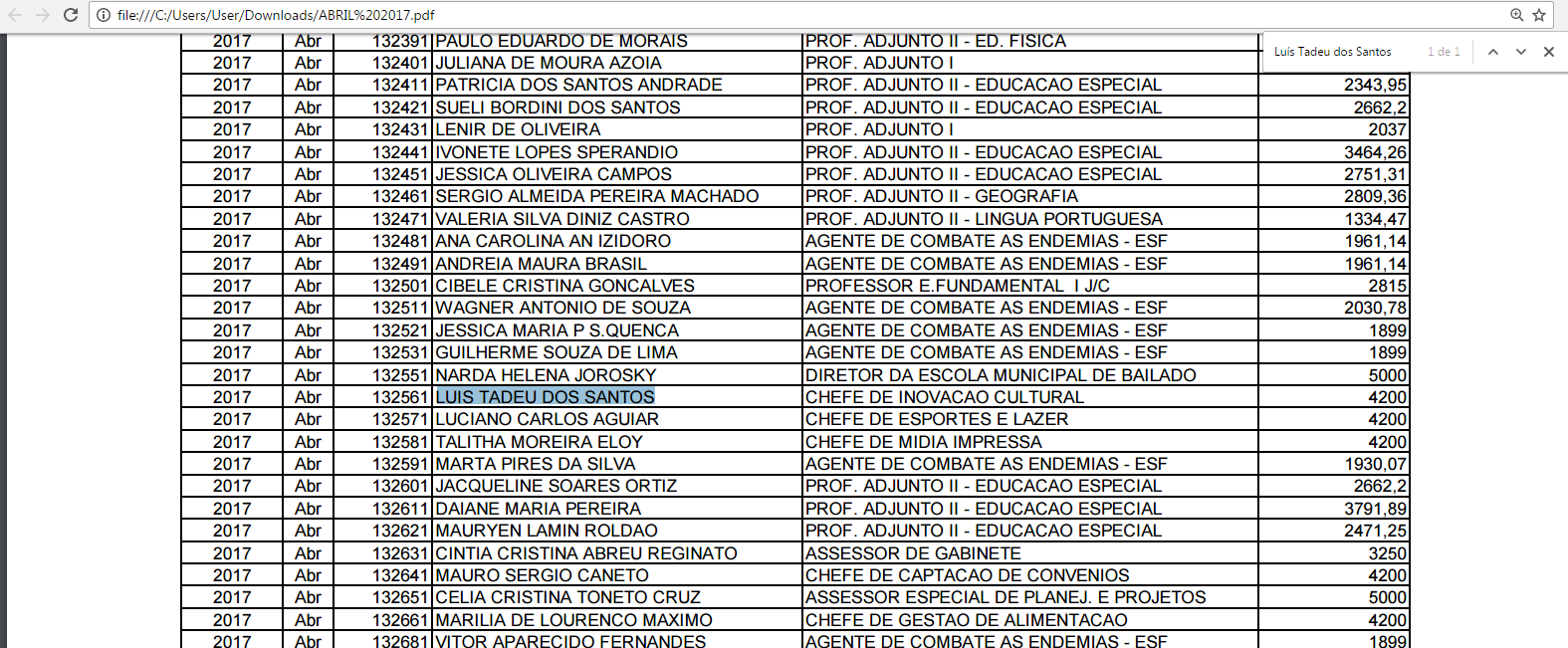 Treze dias após matéria divulgada pelo Contratempo (26/04/17) em que veio a tona a denúncia que Luís Tadeu dos Santos, cujo nome artístico é ‘Tadheo de Carvalho’, ocupa o cargo de Chefe de Inovação Cultural (CC3) e recebe o salário de R$ 4.200,00, conforme Portal de Transparência de abril de 2017 (veja abaixo), mas não exerce a função e trabalha como professor de dança na secretaria da Cultura e é coreógrafo responsável pela Companhia de Ballet Jovem de Ourinhos, Tadheo continua a dar aulas de dança, conforme publicação feita nesta terça-feira, 09, em sua própria página de uma rede social, fato que demonstra que nem a direção da escola de bailado, tão pouco a secretaria de Cultura ou a Prefeitura, tomaram qualquer providência em relação ao fato de extrema gravidade, já que ao ocupar cargo de confiança e dar aula de dança, ‘Tadheo de Carvalho’ (Luís Tadeu dos Santos) está em desvio de função e infringe a lei, uma vez que se foi nomeado para chefia, não poderia dar aulas. Ao não exercer o cargo em comissão e receber a respectiva remuneração, ‘Thadeo’ comete um ato de improbidade administrativa, assim como os responsáveis por sua nomeação, o secretário de Cultura, Rodrigo Donato e o prefeito Lucas Pocay.