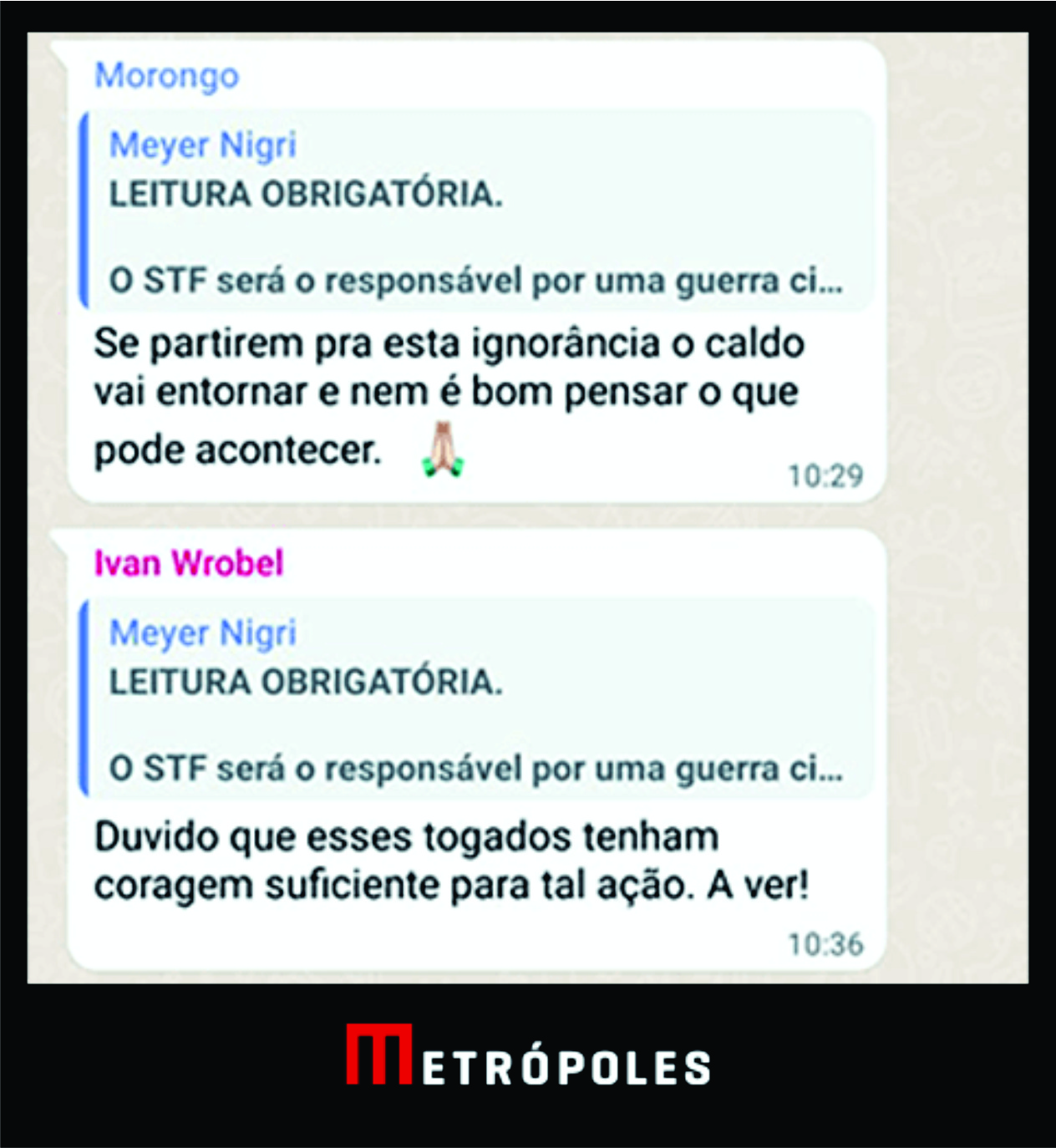 Leia a reportagem na integra : https://www.metropoles.com/colunas/guilherme-amado/exclusivo-empresarios-bolsonaristas-defendem-golpe-de-estado-caso-lula-seja-eleito-veja-zaps