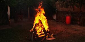 No mais era mesmo em volta da fogueira, fazíamos de tudo para que não acabasse, era quando tudo ia para o fogo, ripas de cercas da vizinhança, porta velha, pó de serra de raspa de Syntéko levantando labaredas, pedaços de plástico e tecido, raramente descartados e até pneu velho e fio encapado causando cheiros desagradáveis tendo que ser retirados rapidamente para que a festa continuasse.