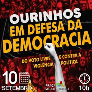 No próximo dia 10 de setembro (sábado) está marcada uma Mobilização Nacional em defesa da democracia, do voto livre e contra a violência política. O cenário econômico e social só piorou para a classe trabalhadora, a qual vem sofrendo uma grande precarização das condições de vida. As constantes ameaças de golpe proferidas pelo presidente genocida Jair Bolsonaro à democracia brasileira, as eleições e as urnas eletrônicas, bem como a violência praticada pelos seus seguidores mais fanáticos não irá nos intimidar! Por isso, nesse dia, às 10h da manhã, na Praça Mello Peixoto, ocuparemos as ruas de Ourinhos sem medo, manifestando-se contra esse governo criminoso, contra as ameaças de golpe, o desemprego, a fome, a miséria e a violência contra o povo!